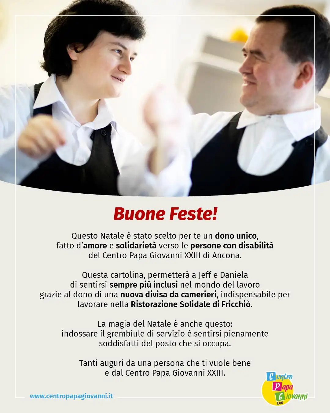 Quest’anno scegli un dono che vale doppio: un pensiero prezioso per chi lo riceve ed un aiuto reale per le persone con disabilità del Centro Papa Giovanni XXIII di Ancona.