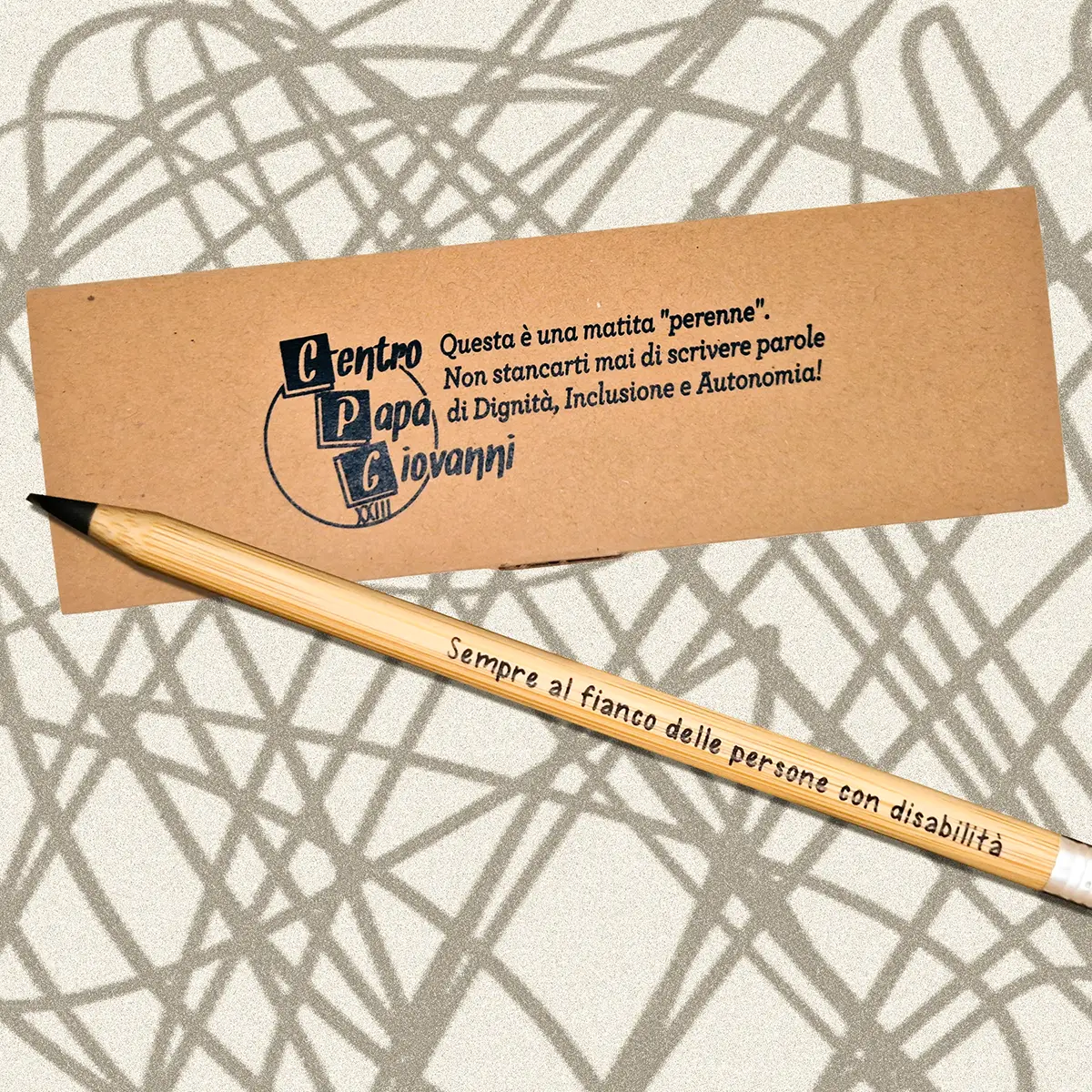 La Matita Perenne è una matita infinita che non si consuma mai. Un regalo originale per un collega o un amico, da scambiarsi sotto l’albero per augurare Buon Natale, facendo un gesto solidale. Chi riceve questo regalo resta sempre felicemente sorpreso…e può scrivere parole di Dignità, Inclusione e Autonomia!